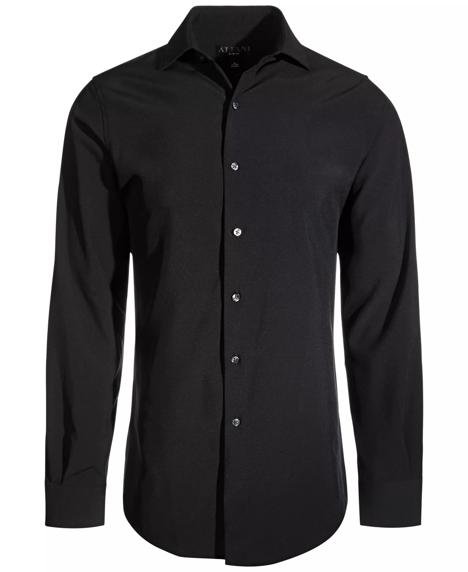 Maximize your comfort in the boardroom and beyond with the moisture-wicking 4-way stretch fabric of this slim-fit dress shirt from Alfani.