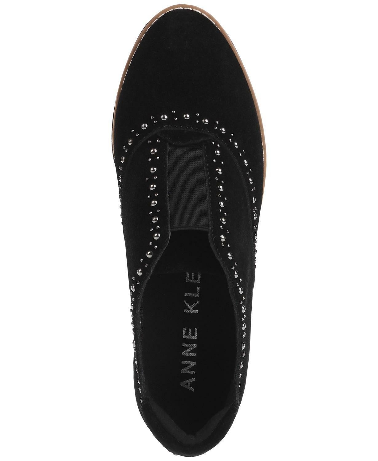 Shining studs trim the menswear-inspired tailored profile of the handsome April loafer flats from Anne Klein.