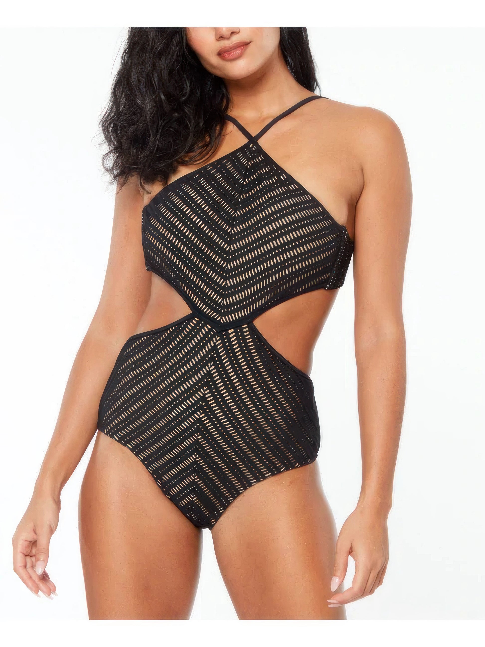 Bar III High-Neck Crochet Monokini Swimsuit Color Black Size L