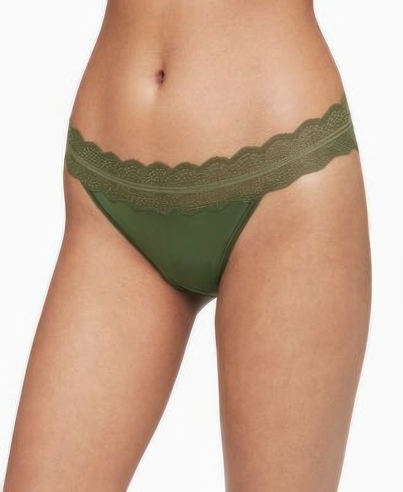An intricate lace waistband with scalloped edgings gives a super-chic look to these lightweight and sleek bikini underwear by Calvin Klein. Style #QD3780
