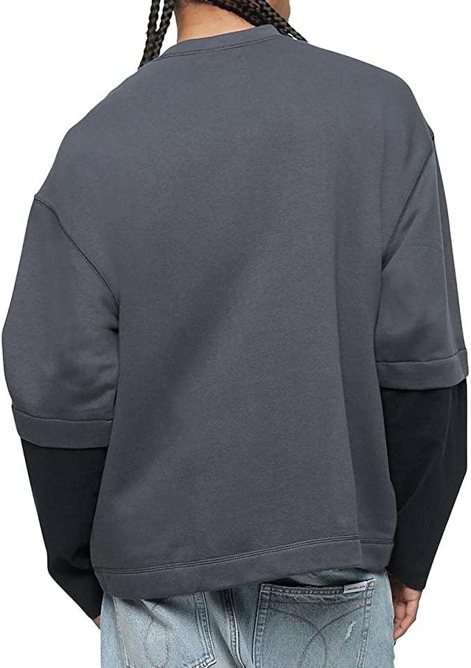 Calvin Klein Men's Double Layer Logo Sweatshirt Color Charcoal Smoke Size M