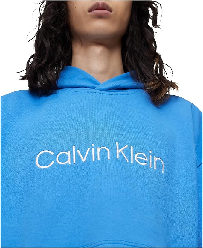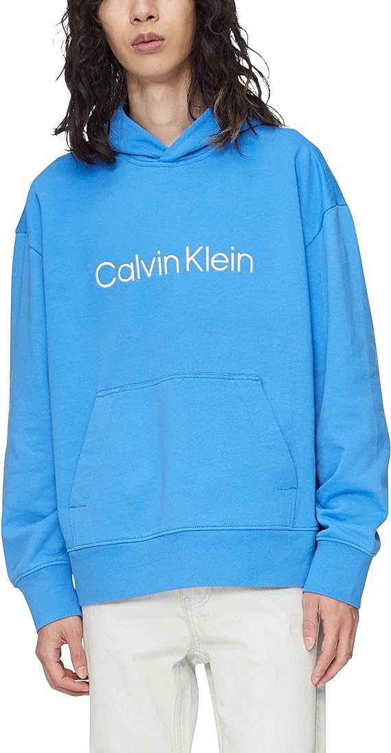 Calvin Klein Men's Men's Relaxed Fit Logo French Terry Hoodie Color Palace Blue Size XL