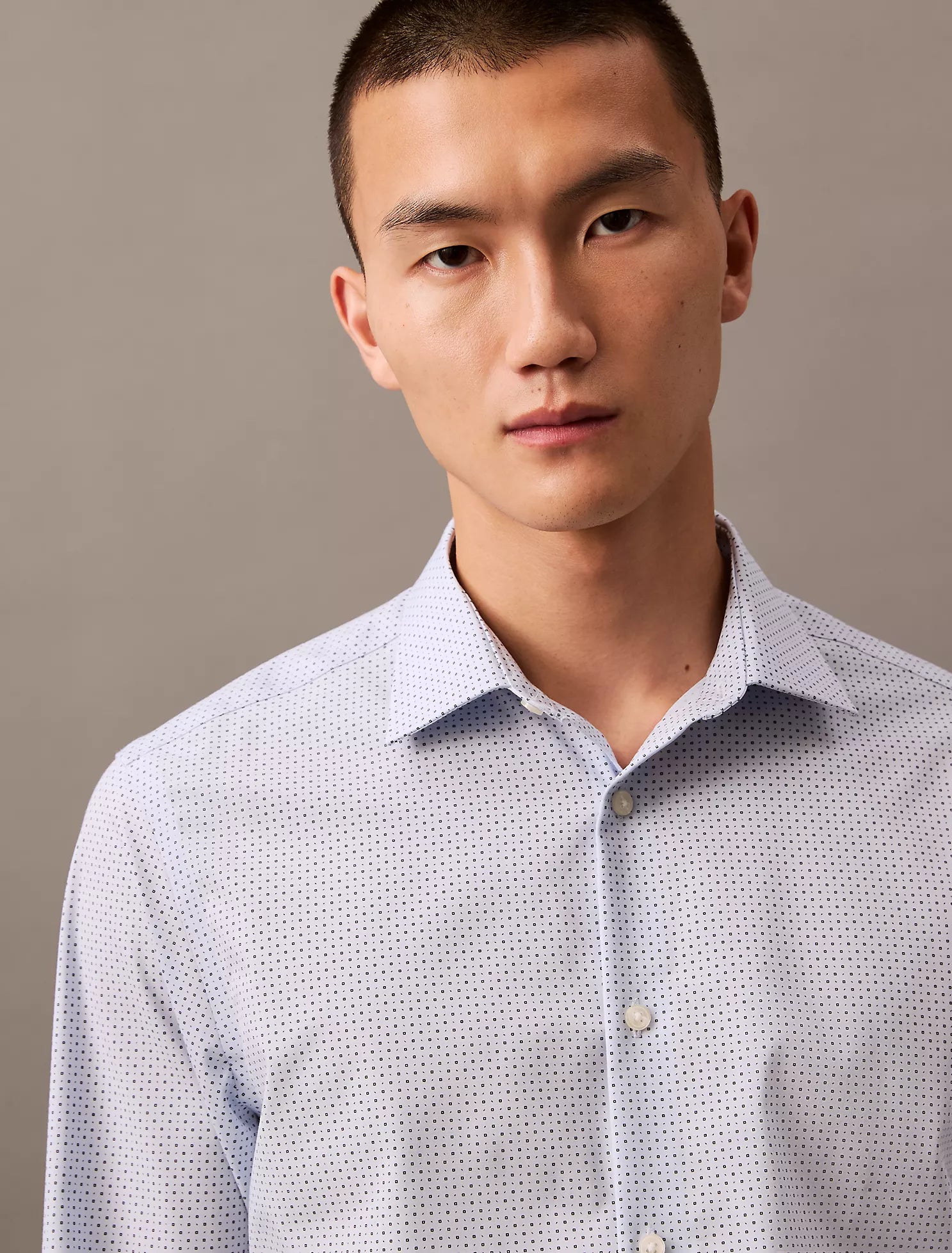 Calvin Klein Men's Regular-Fit Refined Cotton Dress Shirt Micro Dot Blue 17.5 36/37