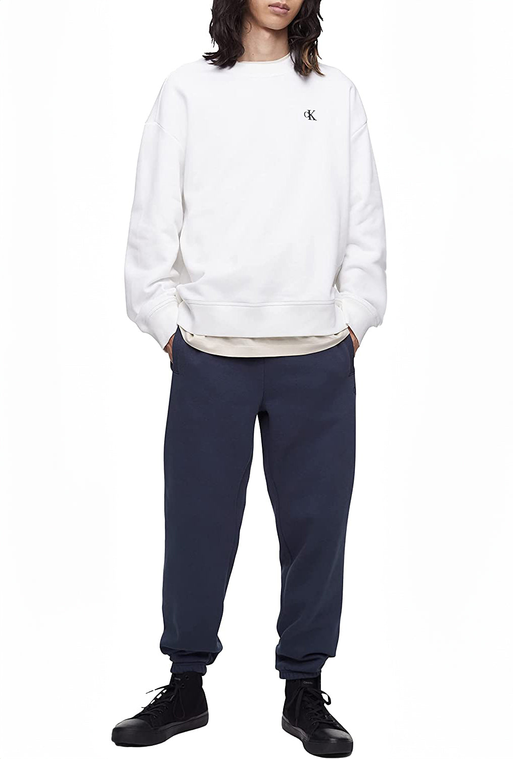 Calvin Klein Men's Relaxed Fit Monogram Logo Fleece Sweatshirt Color Brilliant White Size XL