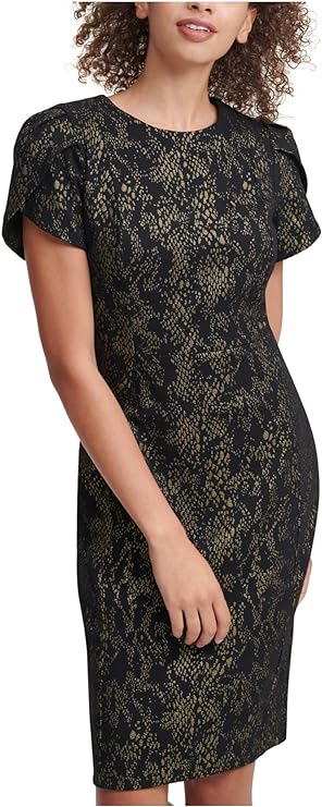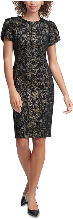 Calvin Klein Metallic-Print Sheath Dress Color Black Size 2