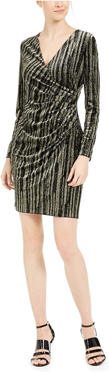Calvin Klein Velvet Glitter Faux Wrap Dress Color Black/Gold Size 12