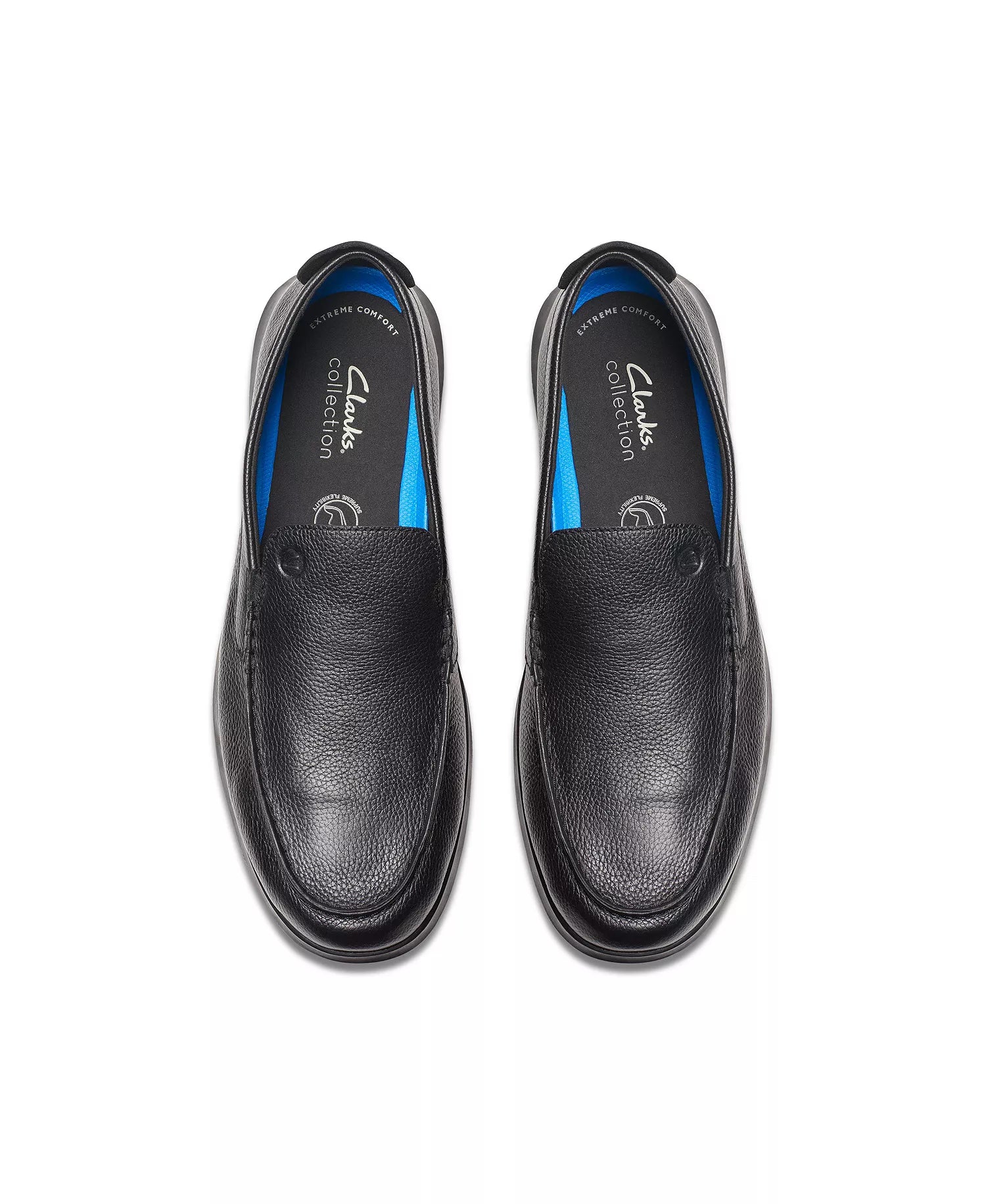 Clarks Men's Flexway Step Slip On Shoes Black Tumbled Leather Size 9