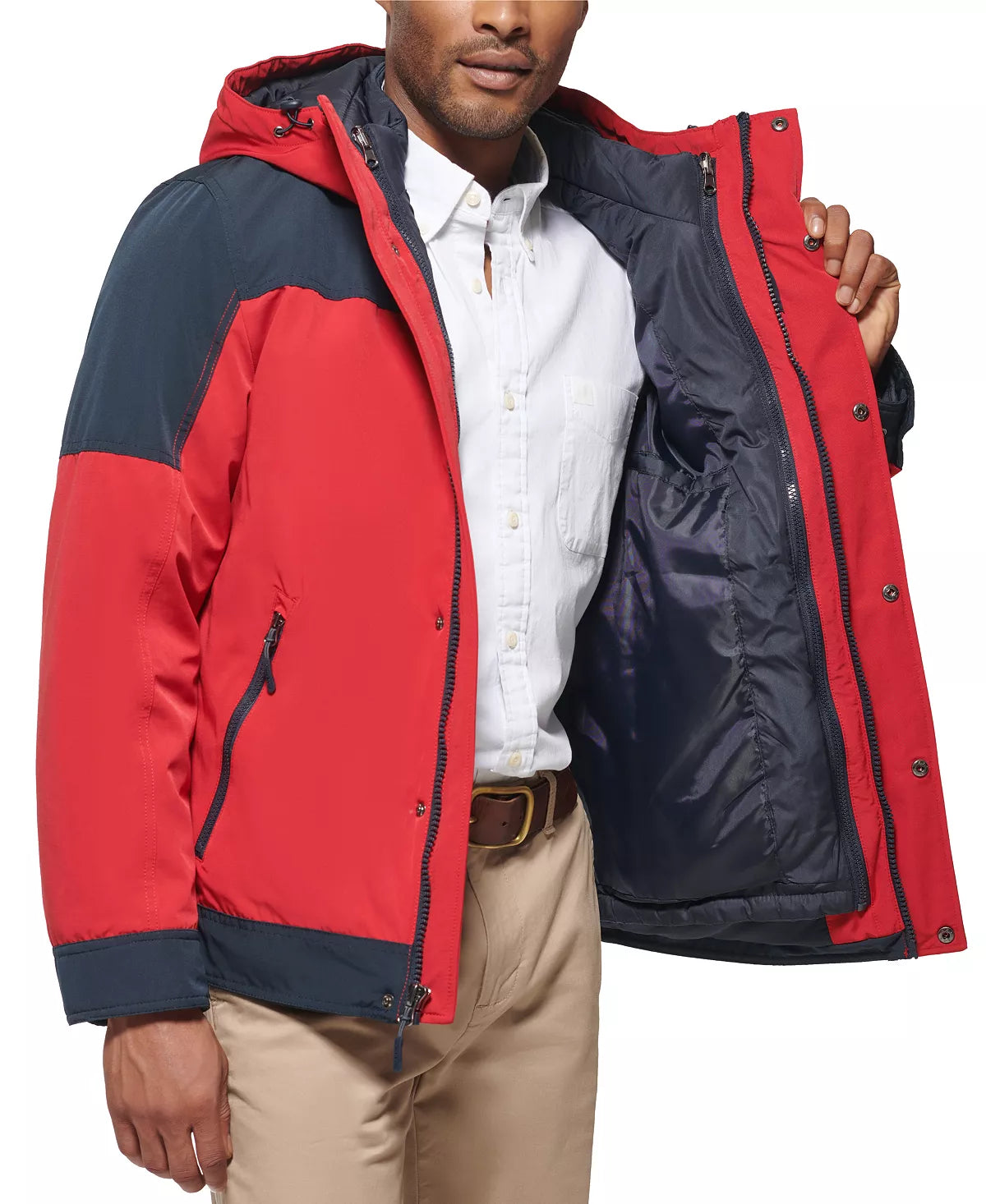 Equipped with a removable bib inset, this 3-in1 hooded jacket by Club Room provides you with exceptional versatility to match outdoor conditions.
