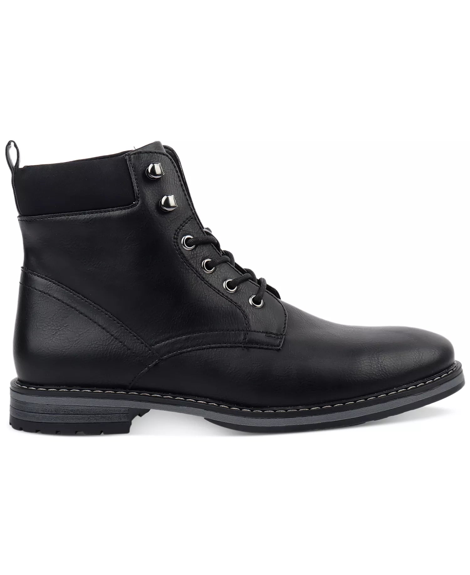 Bring a modern feel to your business-ready look with these dress boots from Club Room, featuring sleek faux-leather uppers and padded collars for all-day comfort.