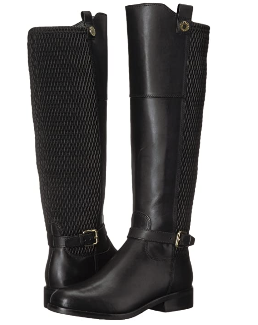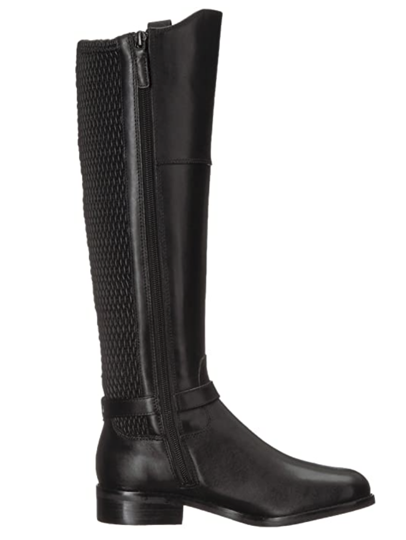 Side pull-tab for easy entry. Ruched, stretch back panel provides a flexible fit. Buckled wraparound strap at ankle. Textile lining. Lightly padded, non-removable insole. Low, stacked heel. Rubber outsole. Imported. Measurements: Heel Height: 1 in Weight: 1 lb 3 oz Circumference: 14 in Shaft: 15 1⁄2 in Product measurements were taken using size 7.5, width B - Medium. Please note that measurements may vary by size. Weight of footwear is based on a single item