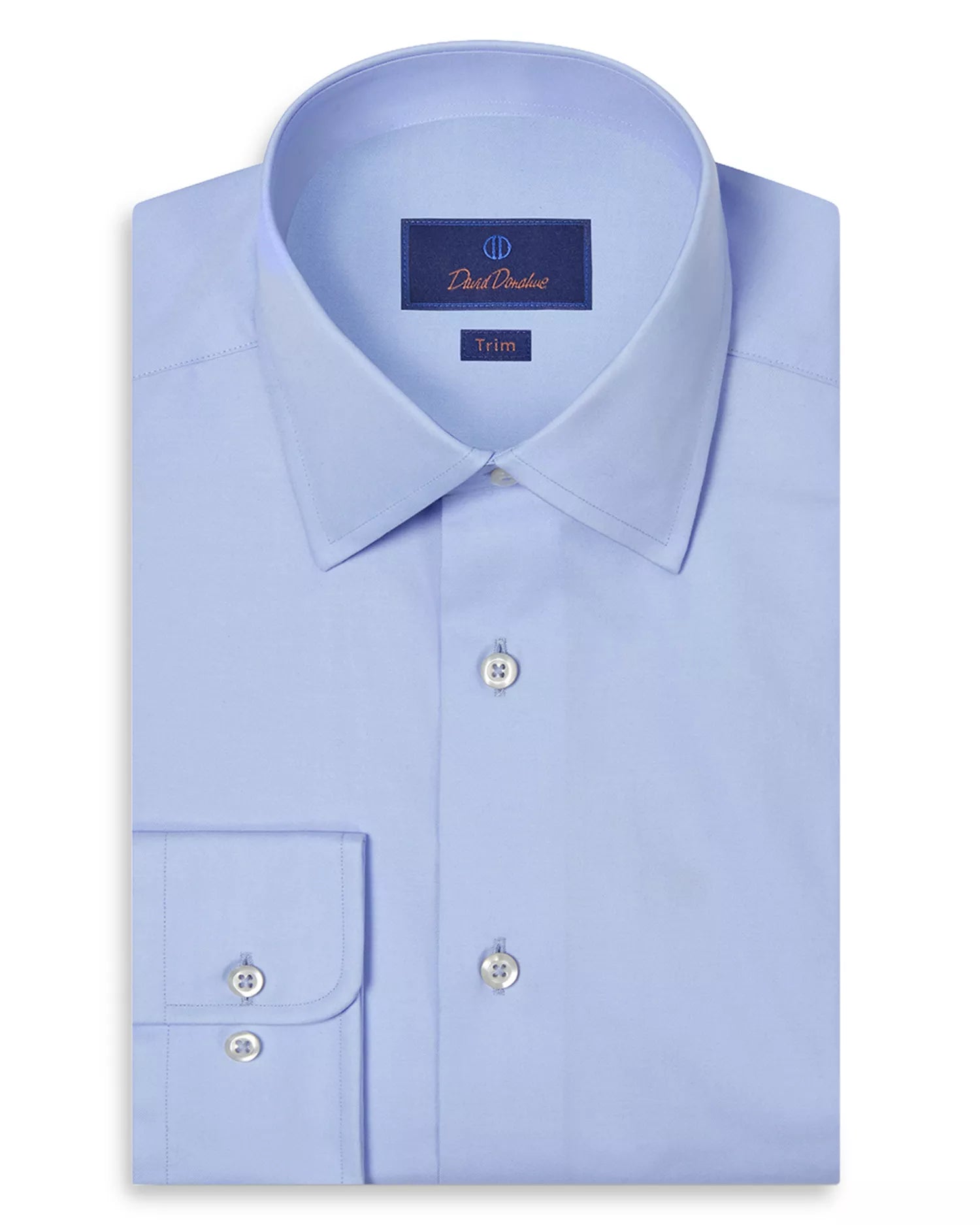David Donahue Men's Super Fine Twill Trim Fit Dress Shirt Sky 17 34/35