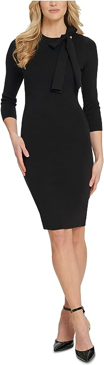 DKNY Women's Tie-Neck Sweater Dress Color Black Size M