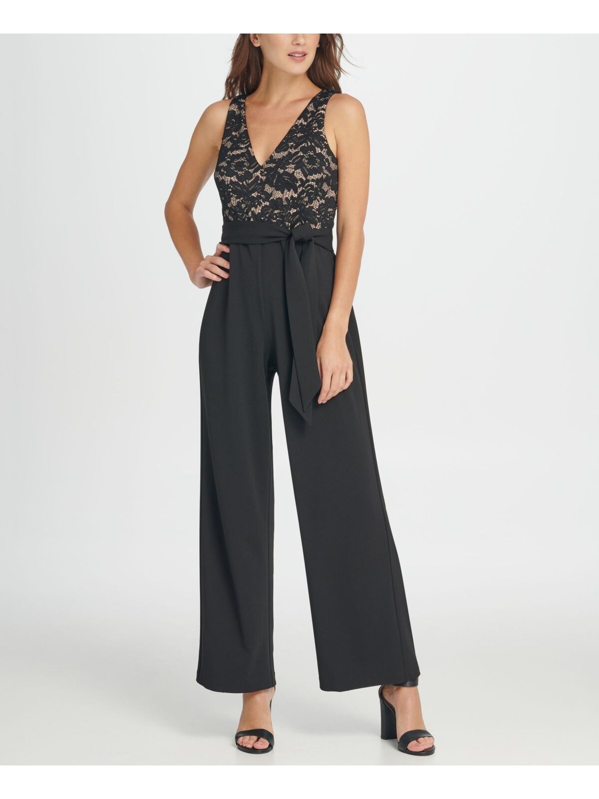 DKNY Women's V-Neck Lace Top Jumpsuit Color Black/Nude Size 6