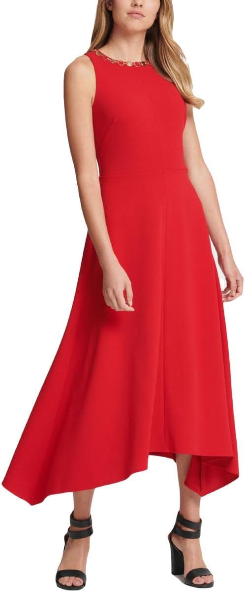 DKNY Women's Knit Long Cocktail & Party Dress Color Red Size 14