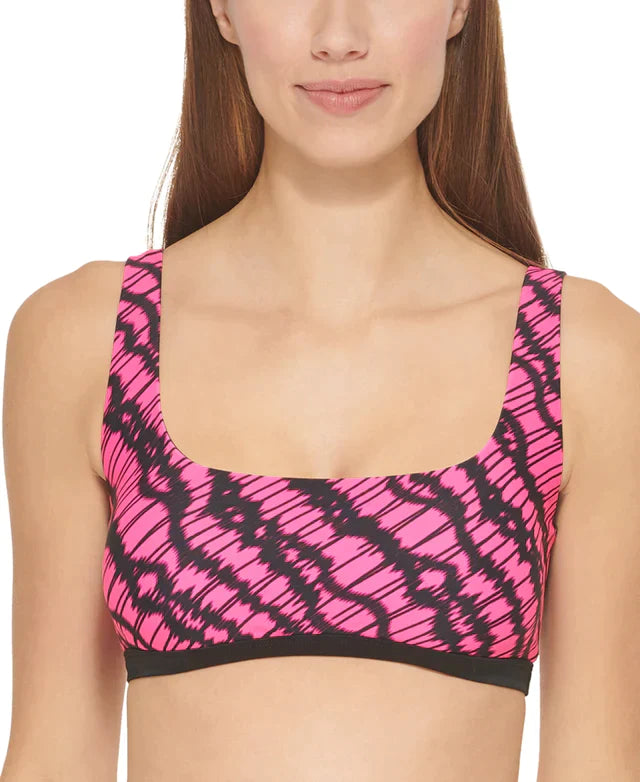 DKNY Womens Printed Square-Neck Bikini Top Color Neon Pink Size XS