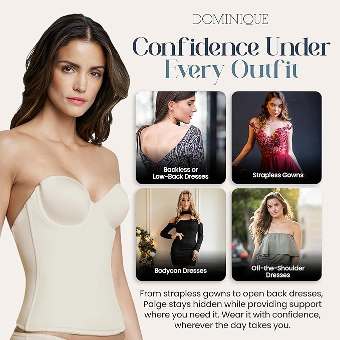 Low Back & Seamless Design: The Dominique Paige Longline Bra features a low-back silhouette with smooth, seamless microfiber for a discreet, no-show finish under formal and bridal wear. Breathable and supportive, it’s ideal for strapless gowns and special occasions.