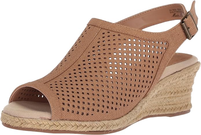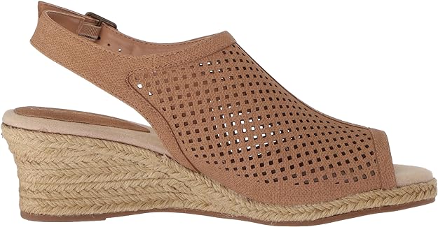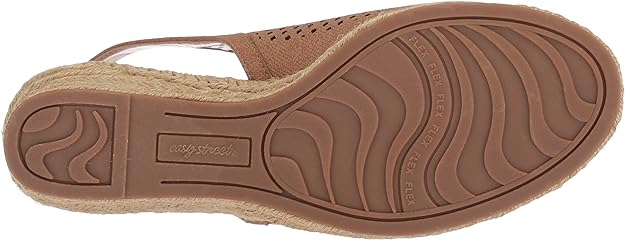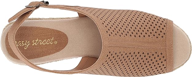 Easy Street Women's Stacy Wedge Sandal Color Tan Linen Print Size 6W