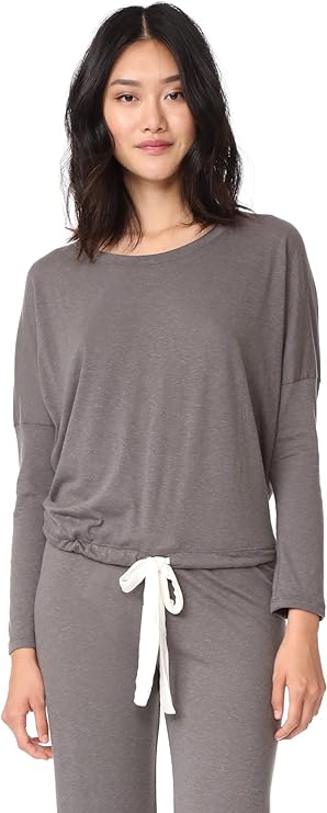Eberjey Women's Cotton Slouchy Pajama Top Color Heather Gray Size S Style T1110L Long Sleeve, Drop Shoulder Location: WOMENm18 190491042778