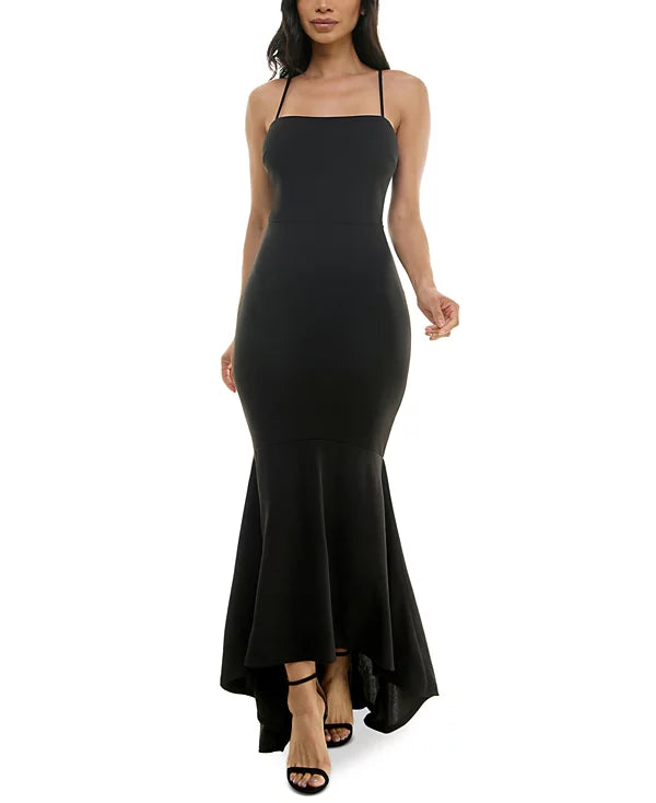 Emerald Sundae Women's Hi-Low Straight-Neck Mermaid Gown Color Black Size S