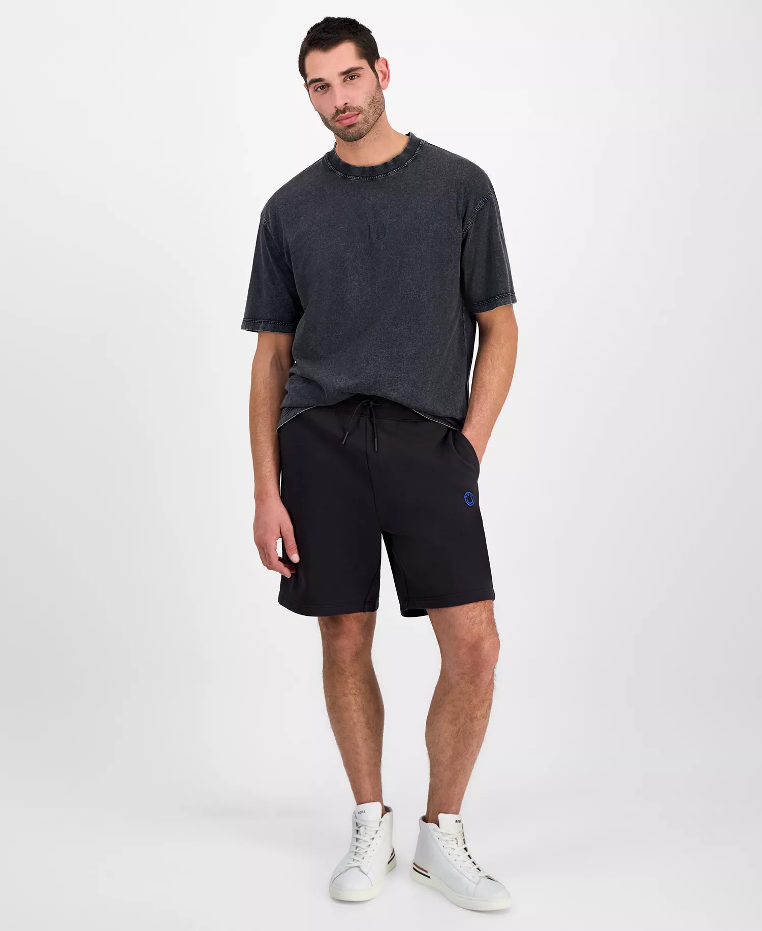 Get ready for an endless array of elegant, street-ready ensembles when you build your look around these all-black drawstring shorts from HUGO by Hugo Boss.