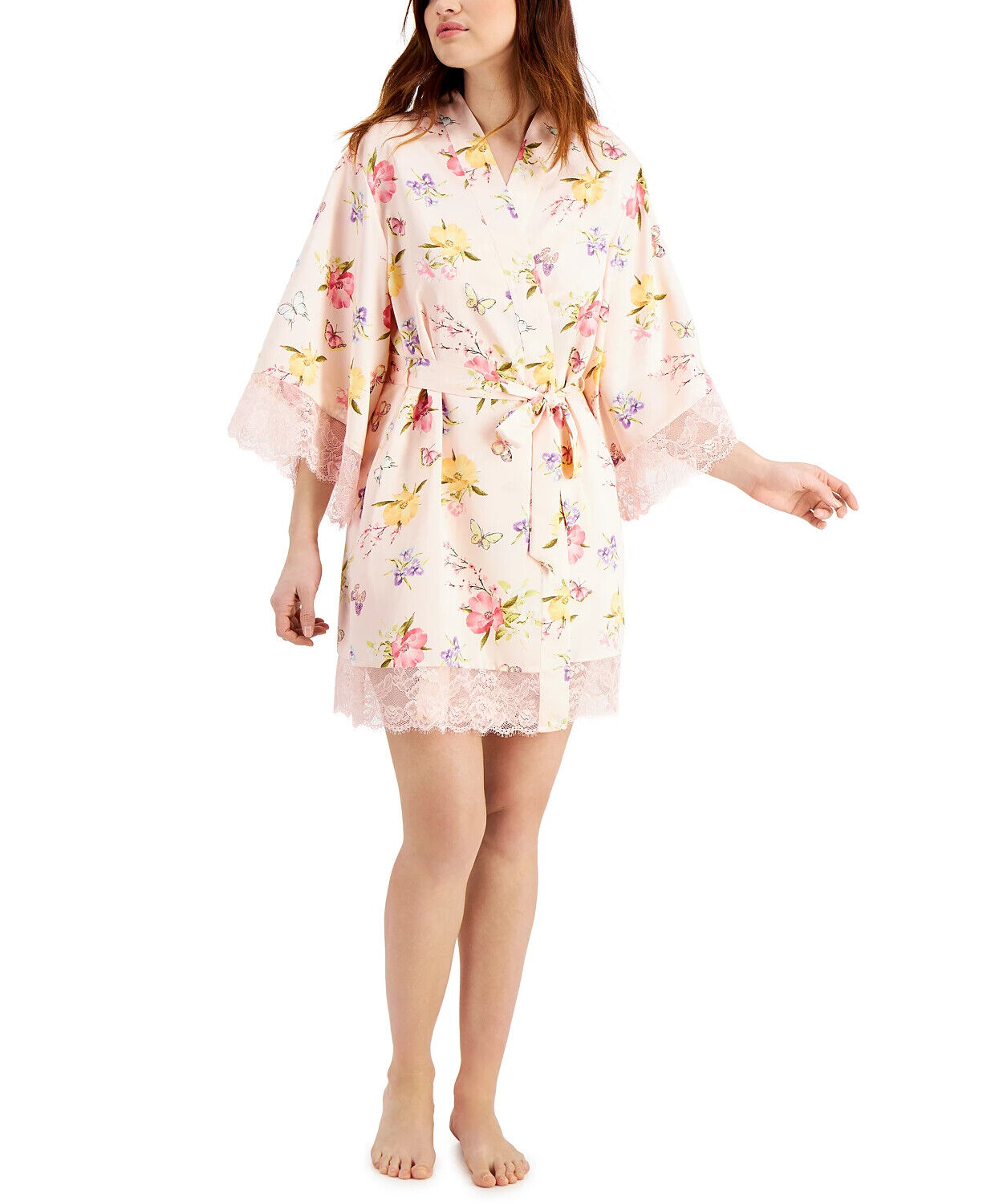 INC International Concepts Women's Lace-Trim Floral Wrap Robe Color Butterfly Flora Size S