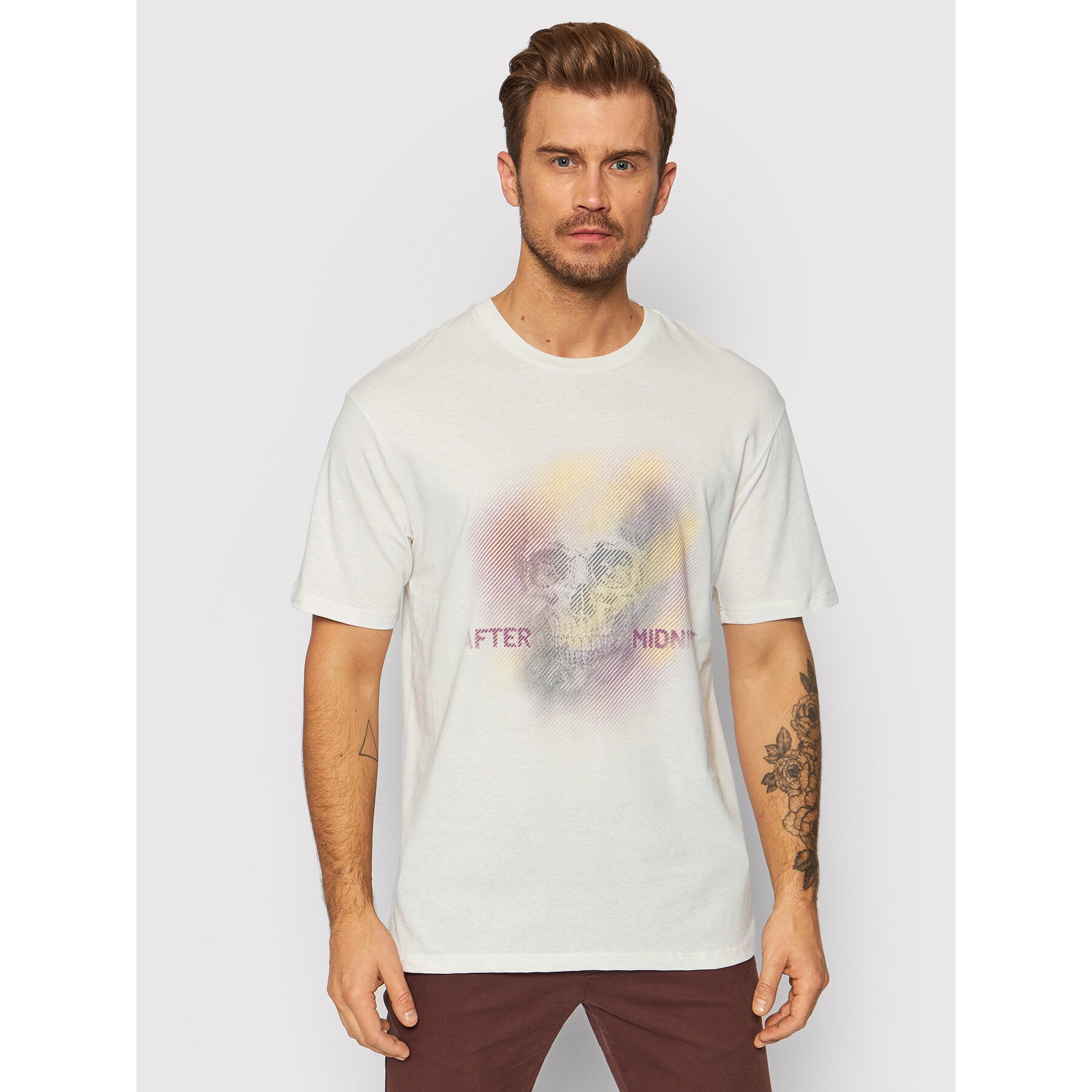 This stretchy and soft cotton Jack & Jones T-shirt shirt brings the cool with a faded skull that offers intrigue and a unique graphic print to stand out.