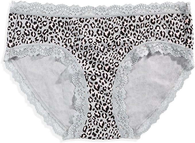 Jenni Women's Cotton Lace Trim Hipster Underwear Color Wild Leo Gray Size S
