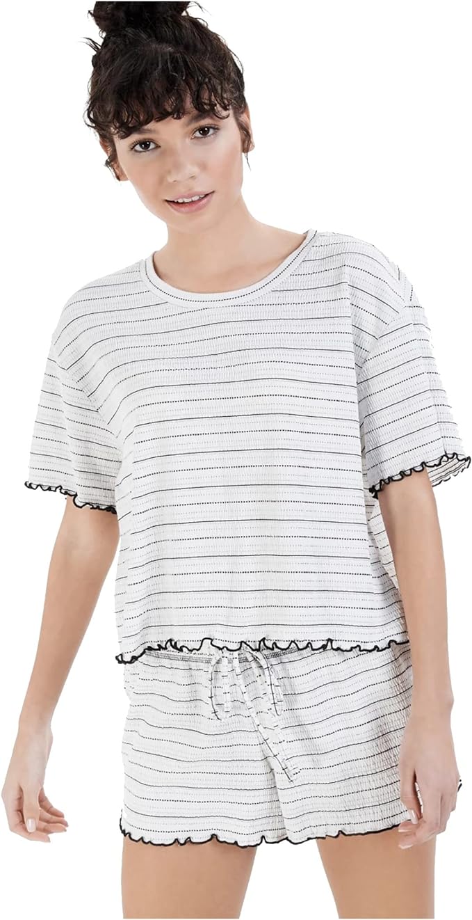 Women's Crinkle Lettuce-Edge Shorts Pajama Set
