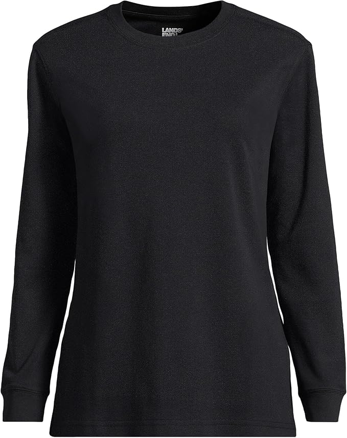 Lands End Women's Long Sleeve Cotton Interlock Crew T-Shirt Black Size M