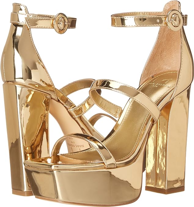 Marc Fisher Women's Frita Platform Heeled Sandal Color Gold Size 8.5M