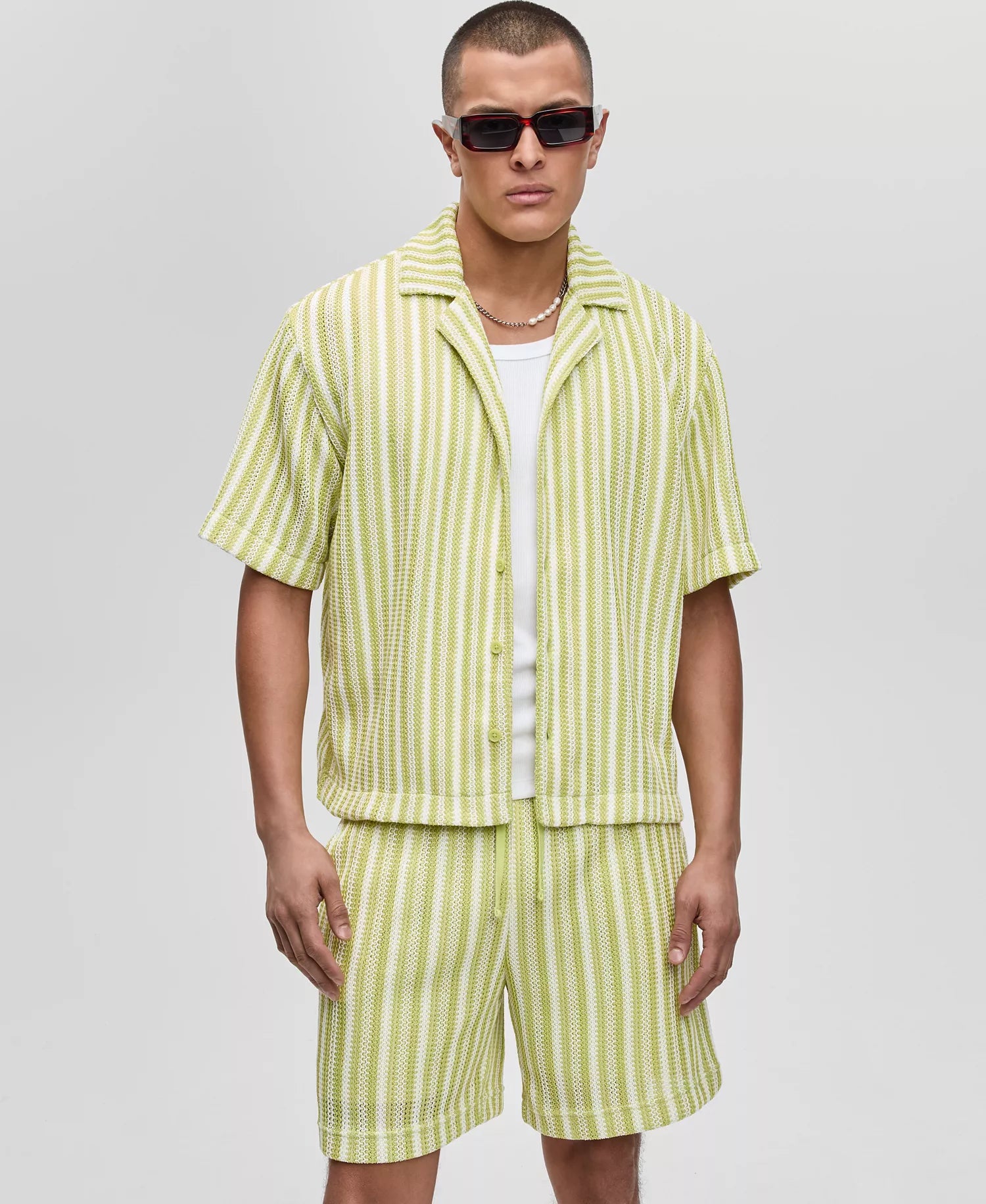 Mode of One Men's Vertical-Stripe Camp Collar Shirt Harvest Pear Size 2XL