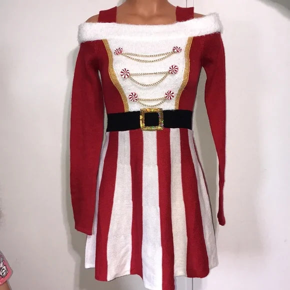 Juniors' Santa Cold-Shoulder Sweater