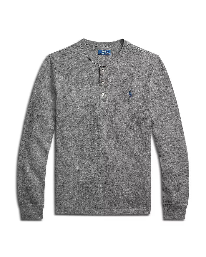 Polo Ralph Lauren Men's Cotton Blend Double Knit Henley Color Medium Flannel Heather Size M