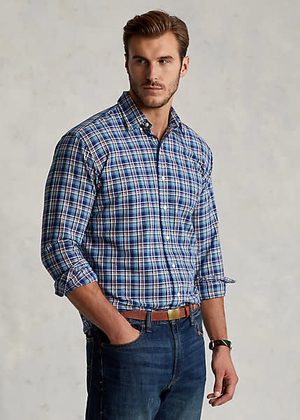 Polo Ralph Lauren Men's Big Tall Classic-Fit Plaid Oxford Shirt Color Royal/Blue Multi Size XLT