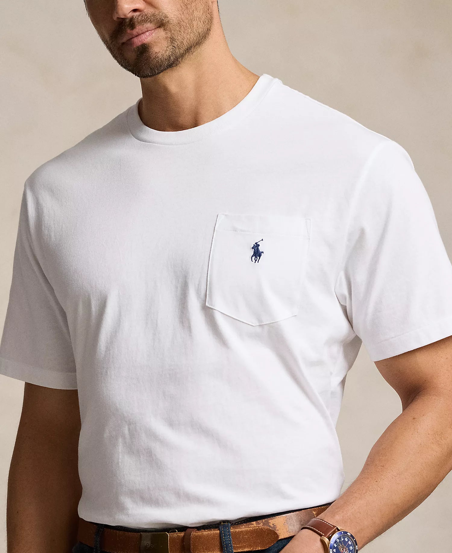 Polo Ralph Lauren Men's Big & Tall Solid Pocket Crew-Neck T-Shirt White Size 2XB