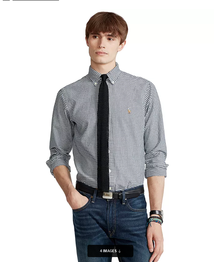 Polo Ralph Lauren Men's Classic-Fit Gingham Oxford Shirt Long Sleeve Color Black/White Size L