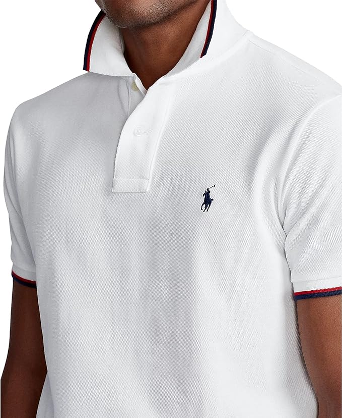 Signature embroidered Pony at the left chest. Tennis tail. Two-button placket.