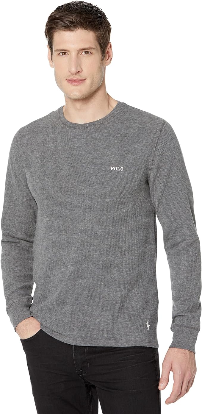 Polo Ralph Lauren Men's Waffle-Knit Long Sleeve T-Shirt Color Charcoal Heather/Antique Cream Size L