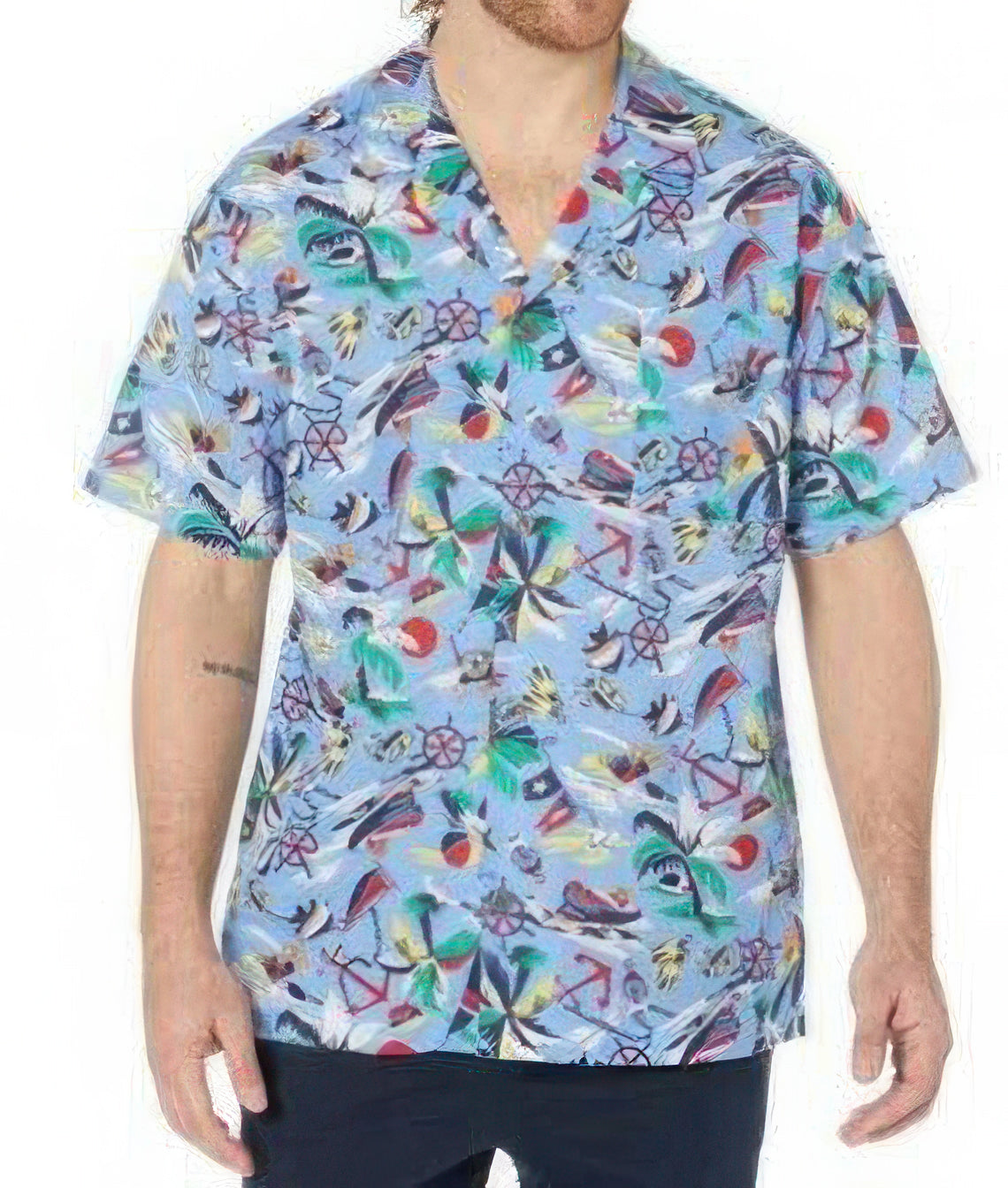 Polo Ralph Lauren Men's Woven Beach Print Pajama Shirt Color Nautical Bearwaiian Size L