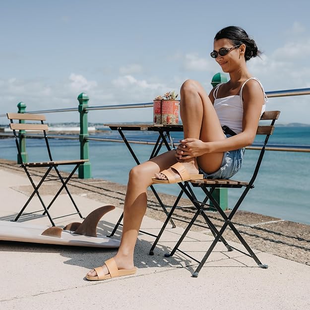 Super soft unlined PVC Free vegan leather or woven two strap slide