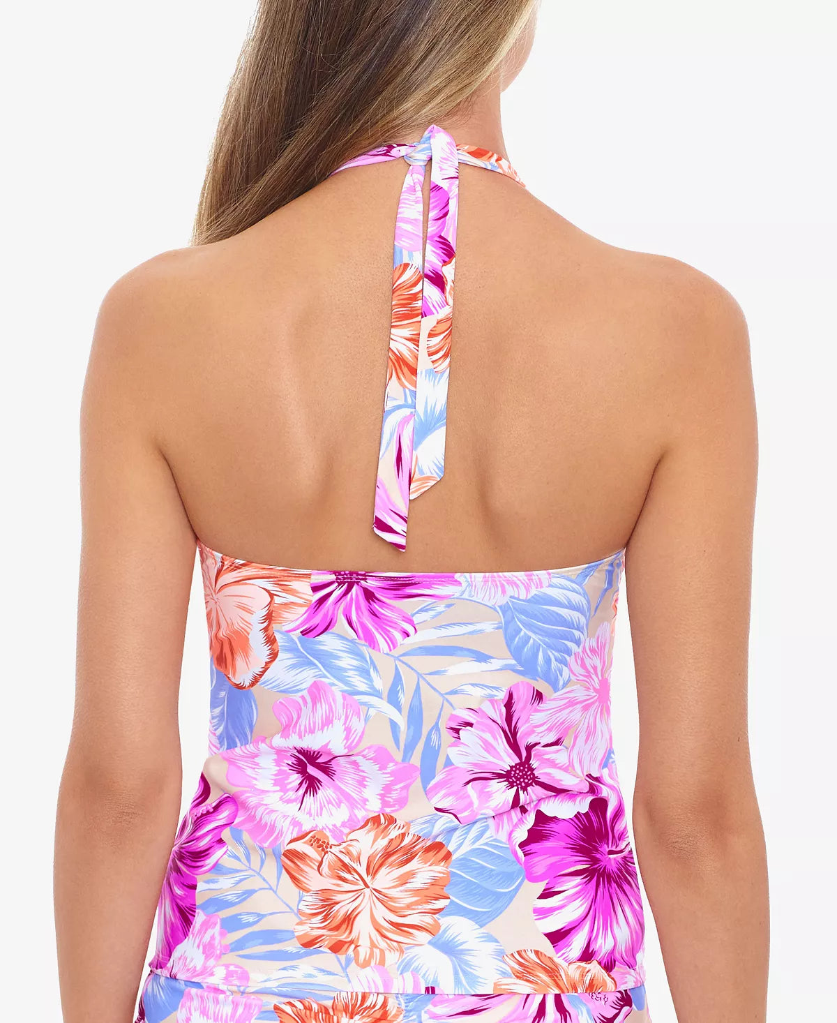 Bring the pretty poolside with this bold floral-print hibiscus halterkini top from Salt + Cove.