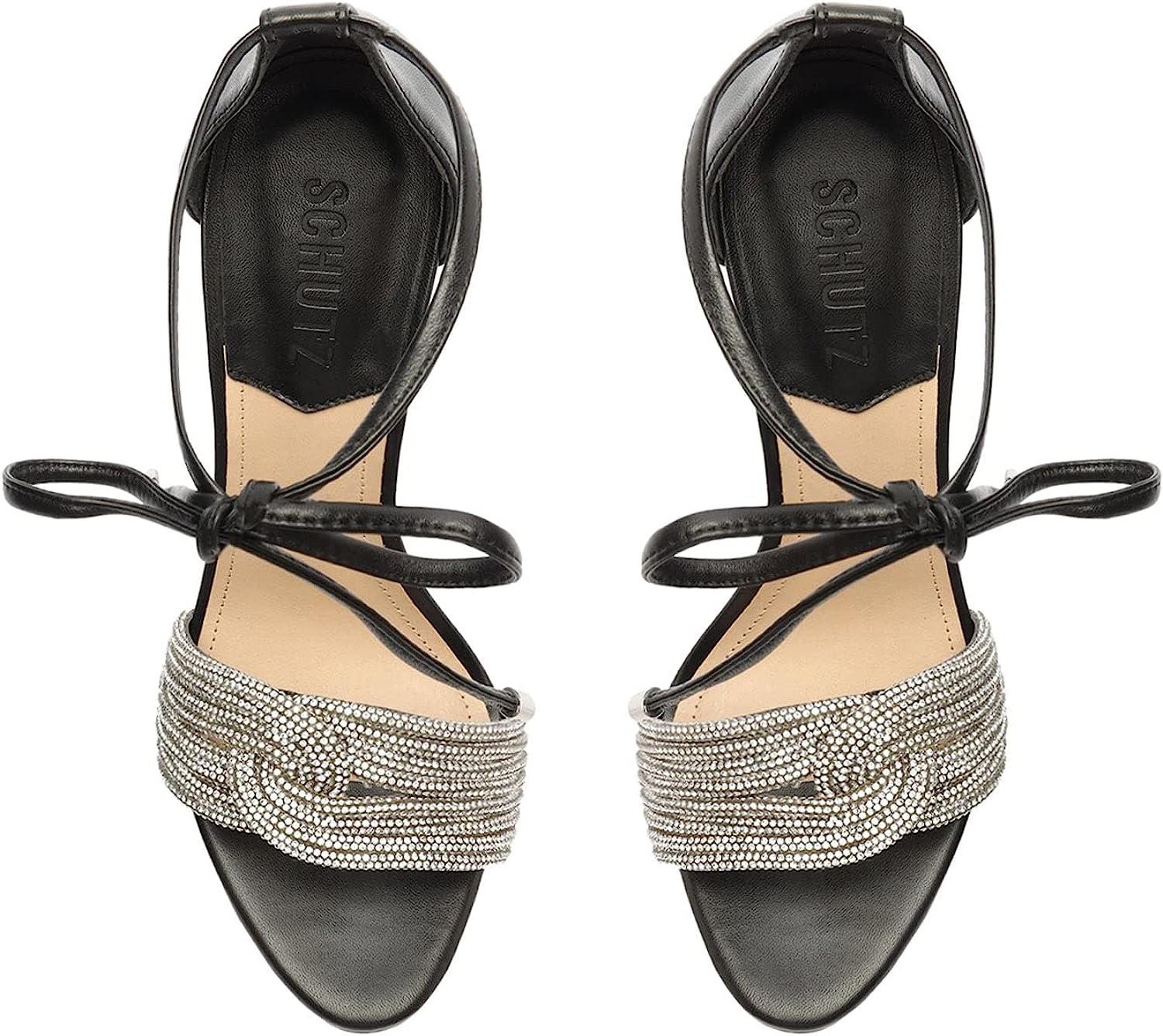 Schutz Andy Embellished Leather Heeled Ankle-Tie Sandals Color Black/Cristal Size 8B