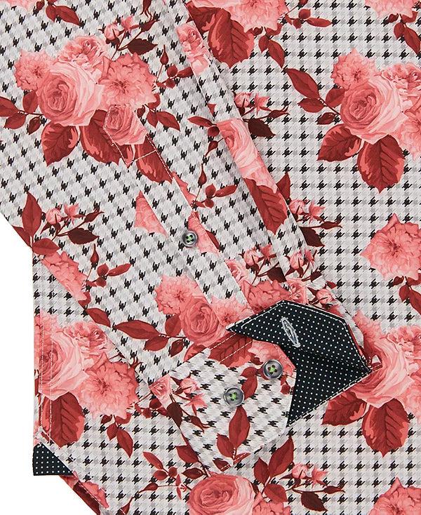 Men's Slim Fit Floral-Print Performance Stretch Dress Shirt