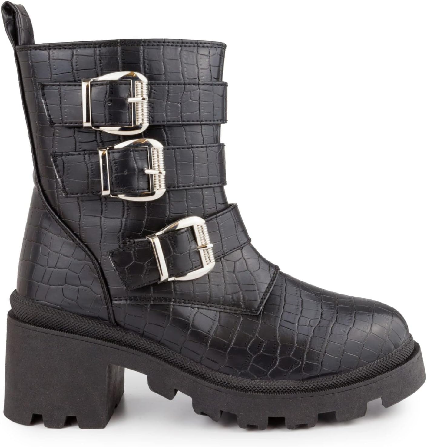 Sugar Women's Filo Buckled Lace-up Platform Boots Color Black Croco Size 7M