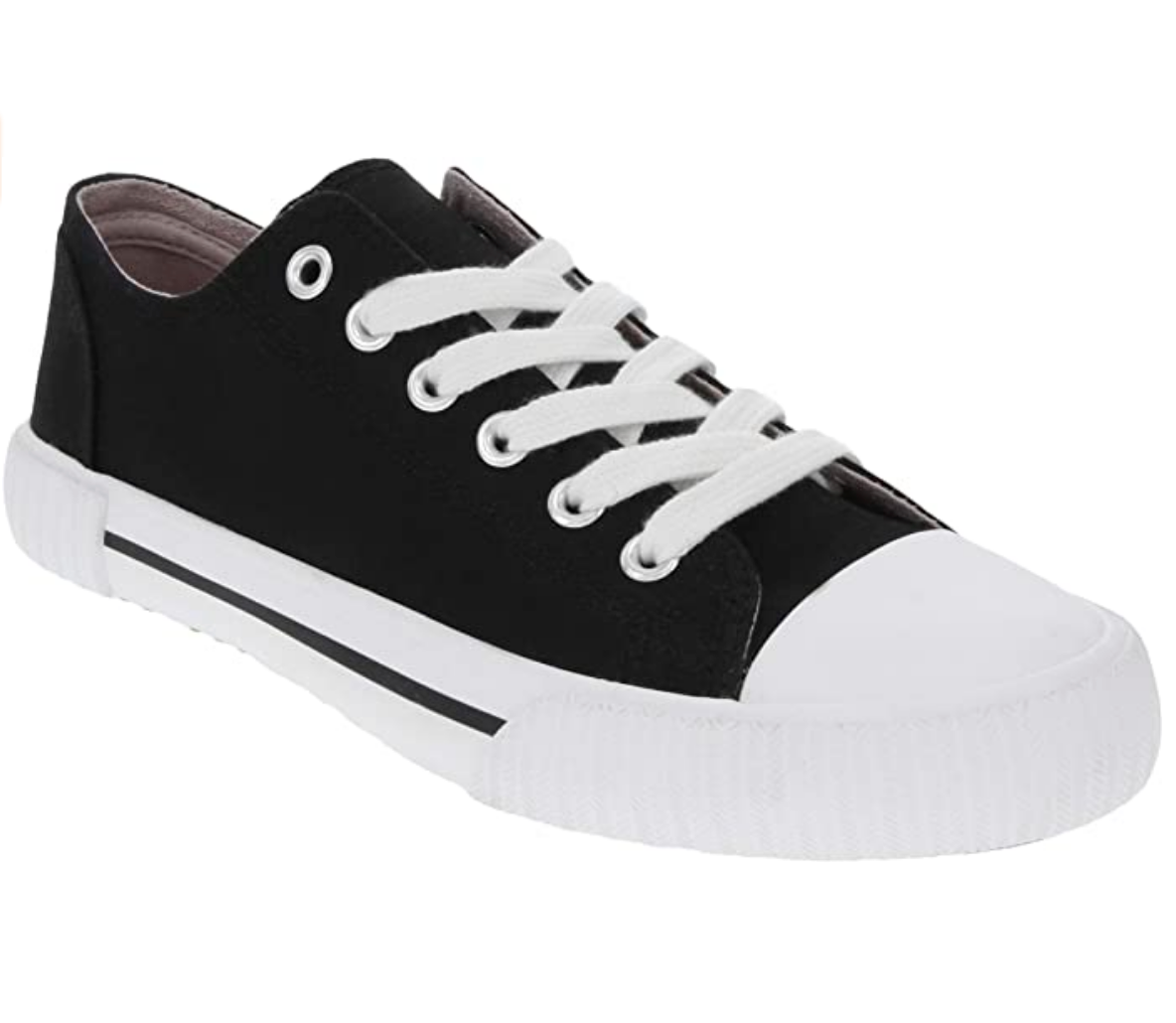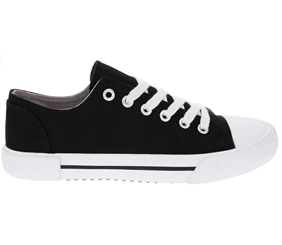 Sugar Women's Genius Comfortable Slip On Sneaker Shoe with No-Tie Laces and Cute Design Color: Black Canvas Size: 8M