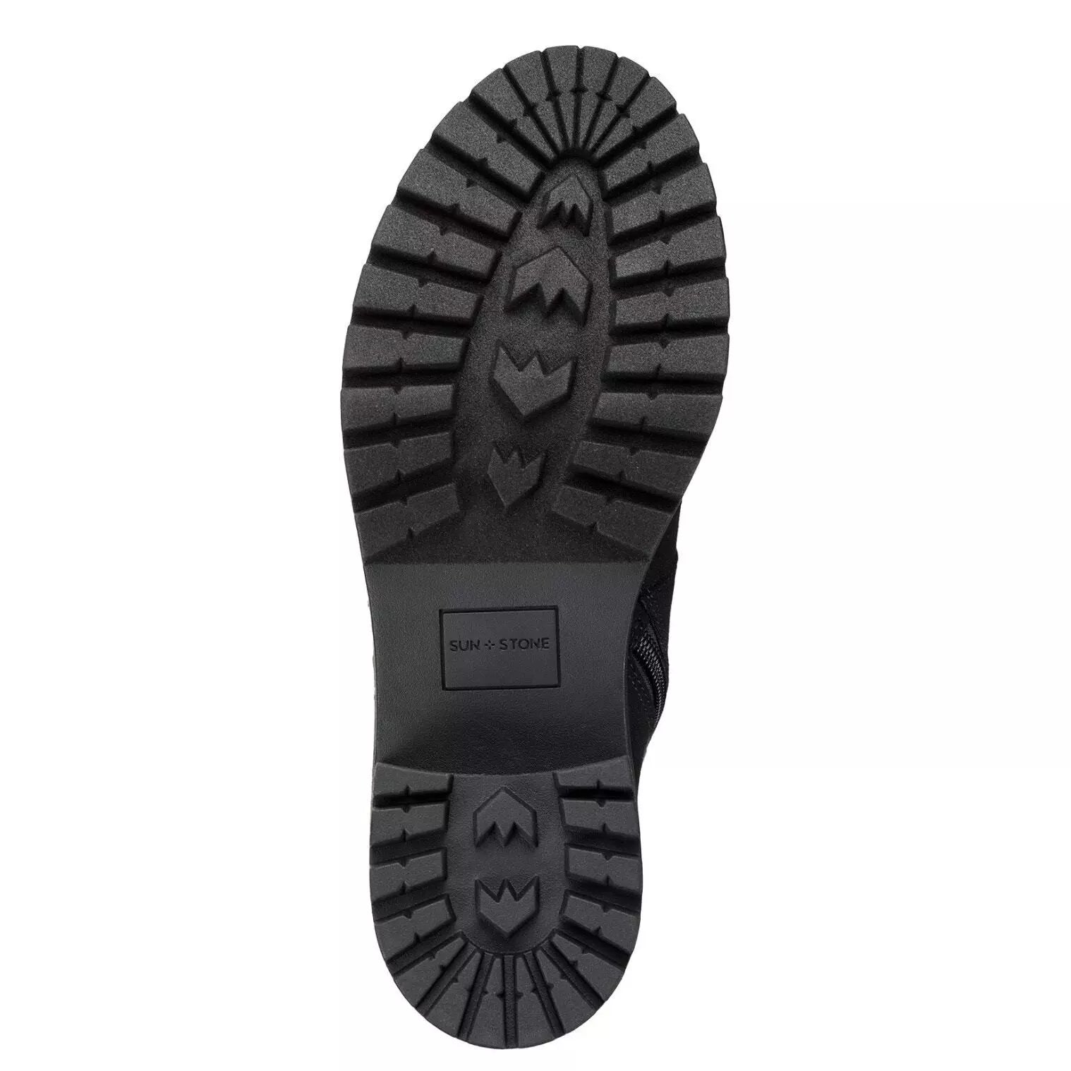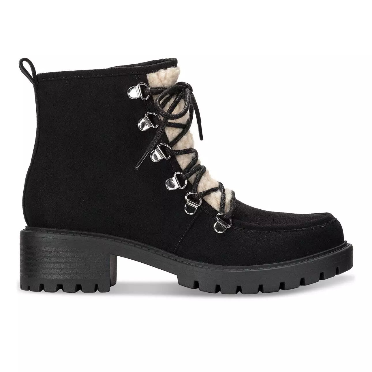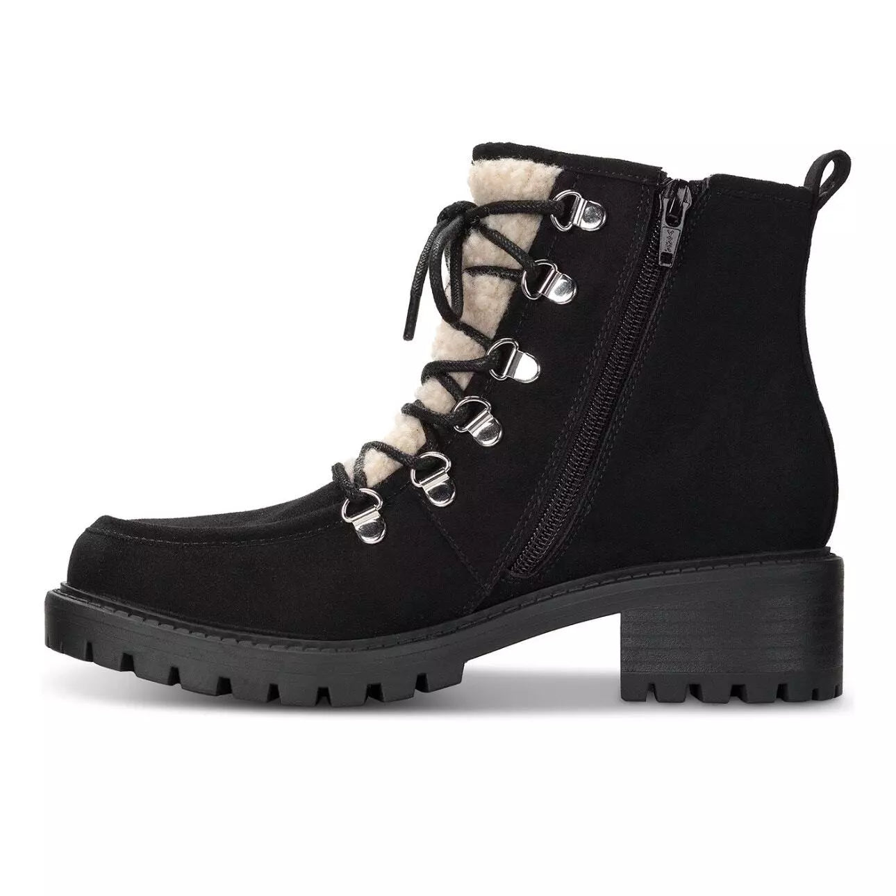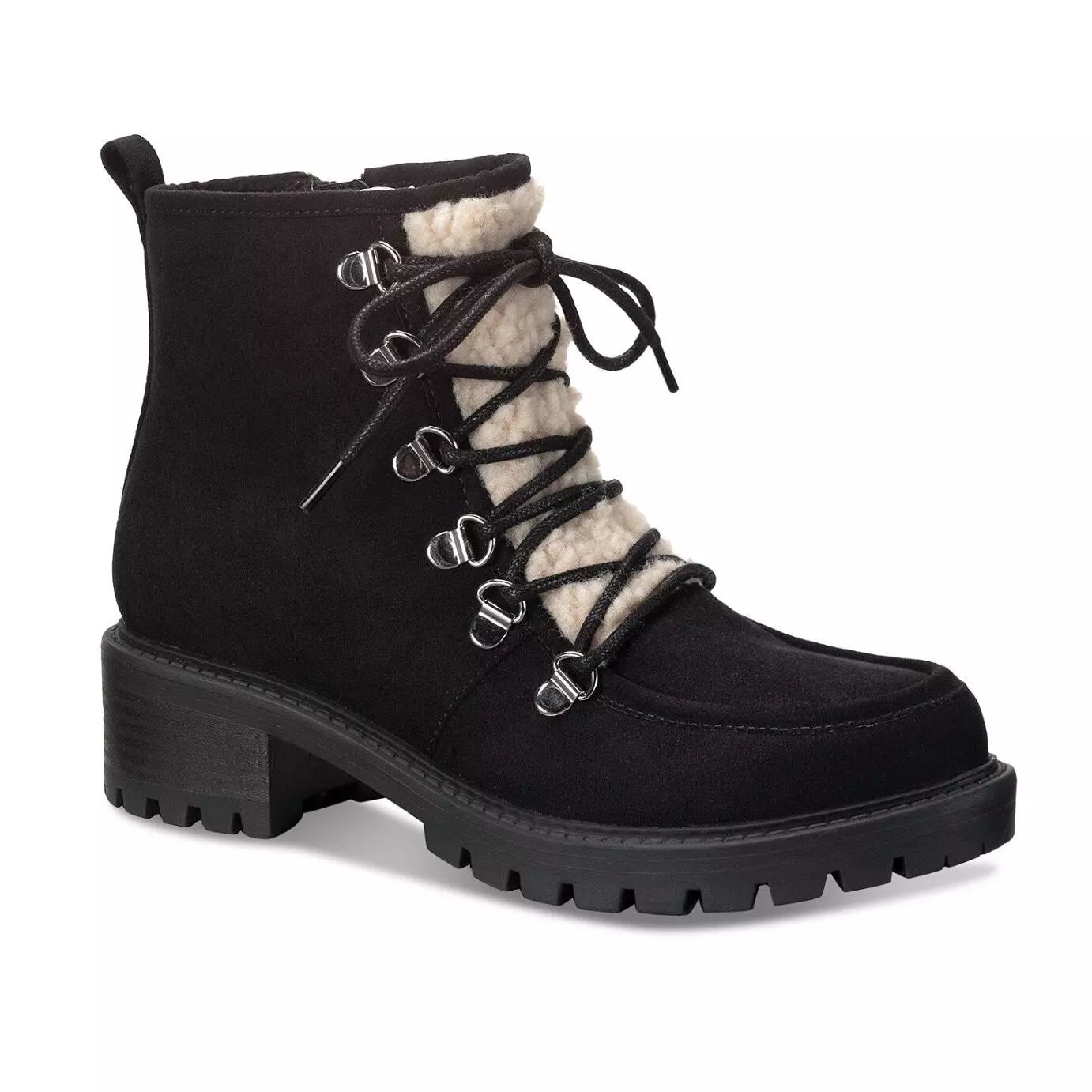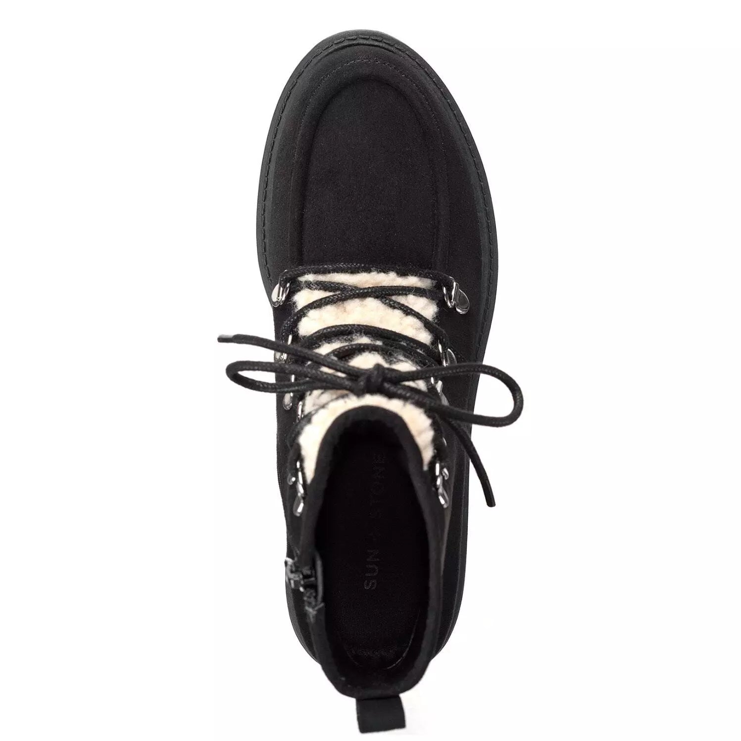 Trimmed in plush faux-shearling, the Quiinn booties by Sun + Stone lace up with fresh cold-weather flair and inner zips for easy versatility.