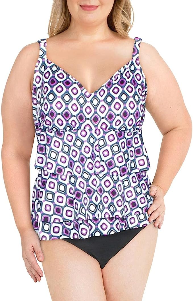 Swim Solutions Jewels Tiered Tummy Control One-Piece Swimsuit Color Purple Multi Size 22W