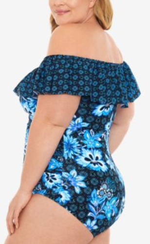 Swim Solutions Plus Size HIDEAWAY Ruffled Off-the-Shoulder One-Piece Swimsuit Color Navy Size 22W
