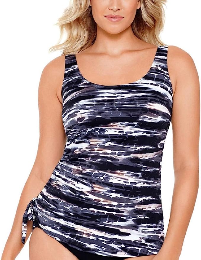 Swim Solutions Printed Side-Tie Tankini Top Color Coastal Plates Black Size 8
