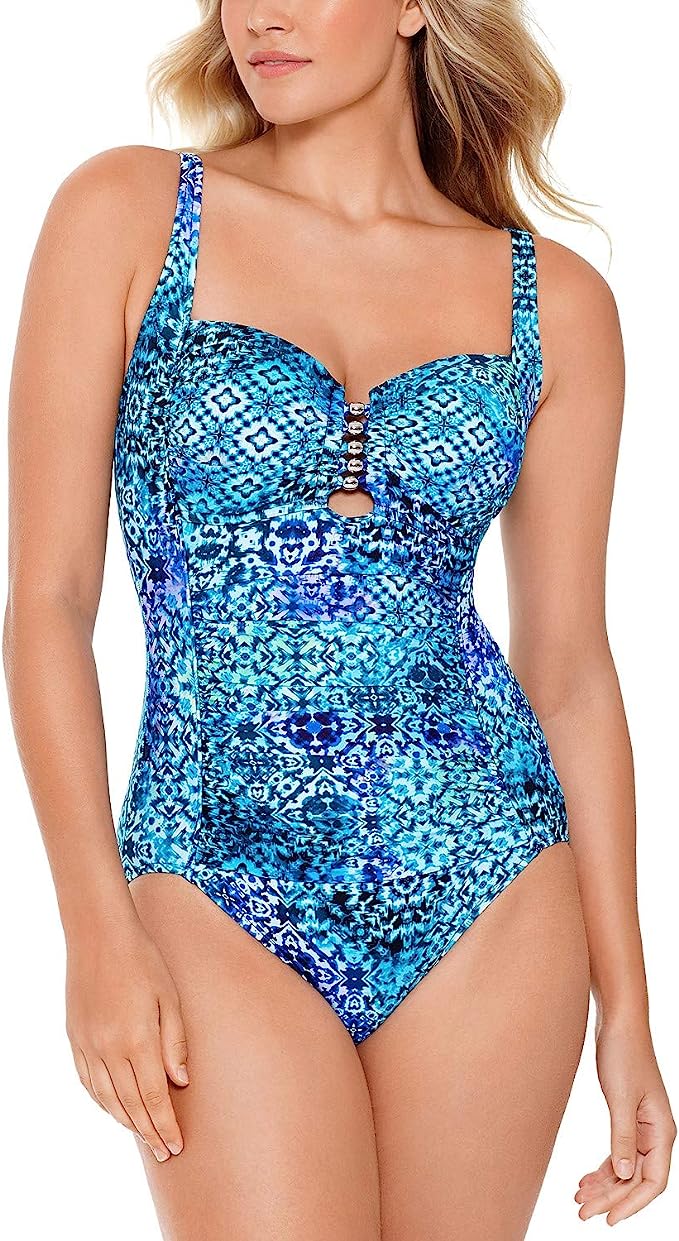 Swim Solutions Santorini Beaded Maillot Strappy-Front One Piece Swimsuit Color Blue Size 10